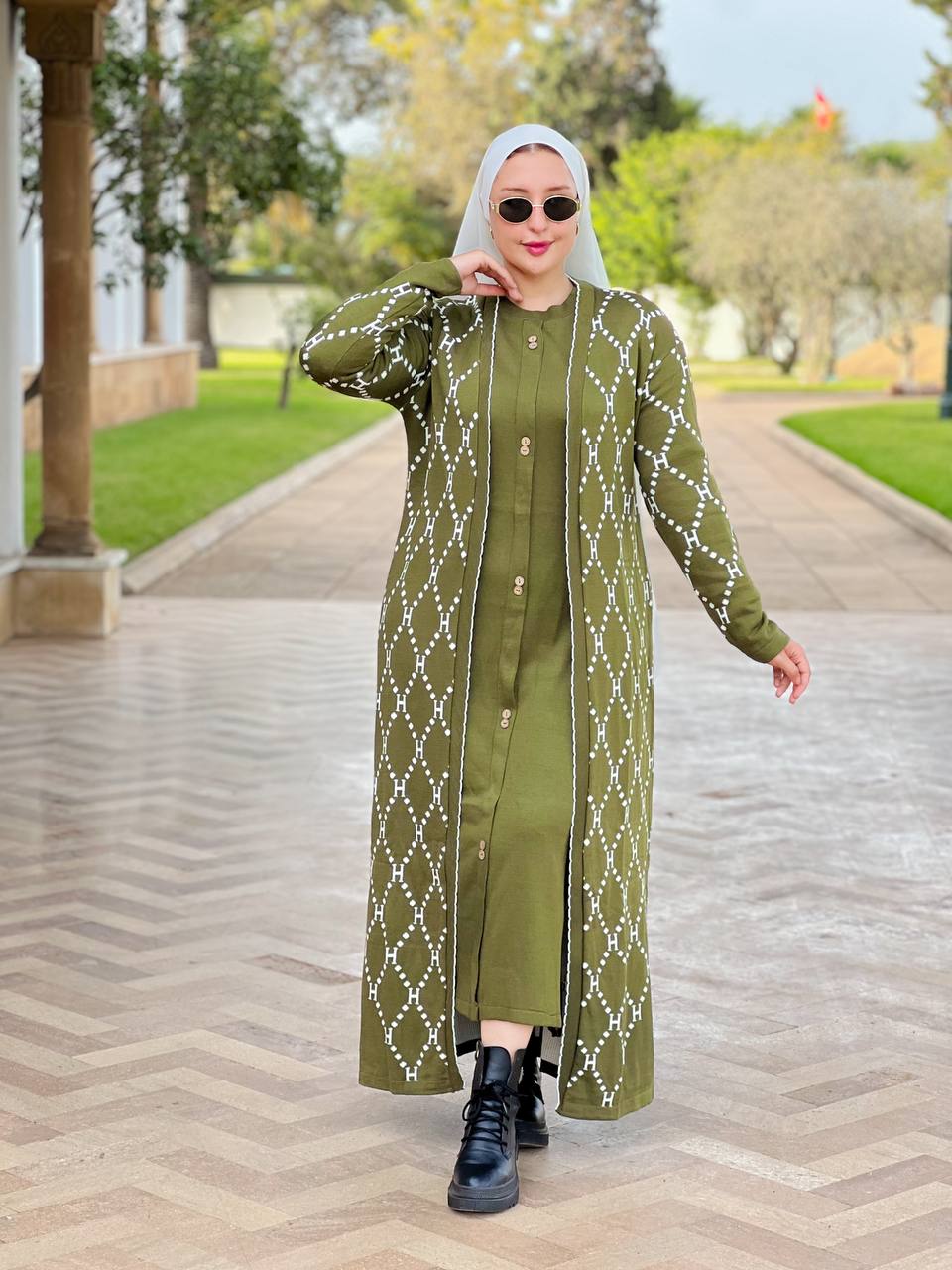 طقم طويل تركي مميز – قصّة مريحة ونقشة فاخرة تناسب كل المناسبات