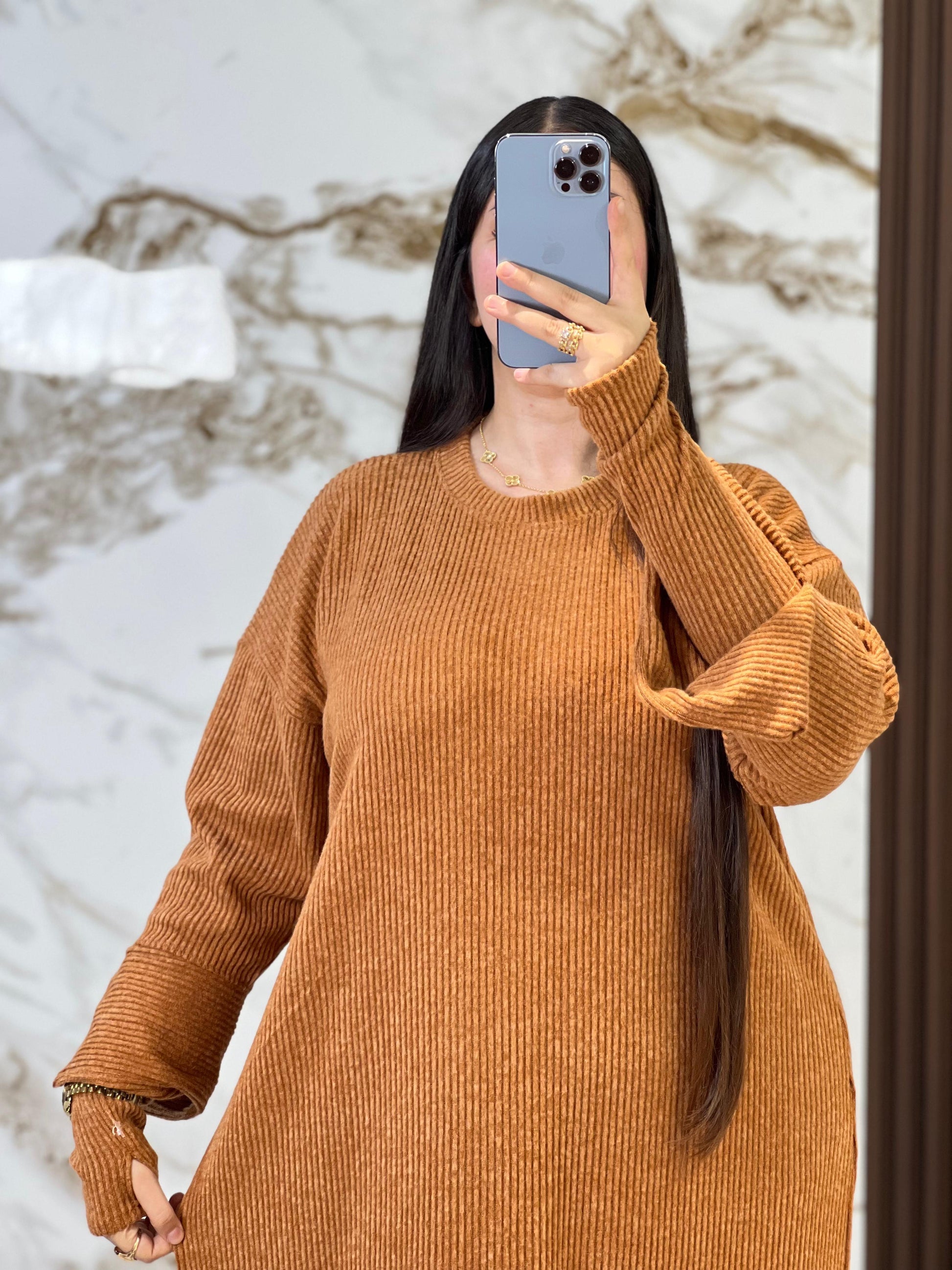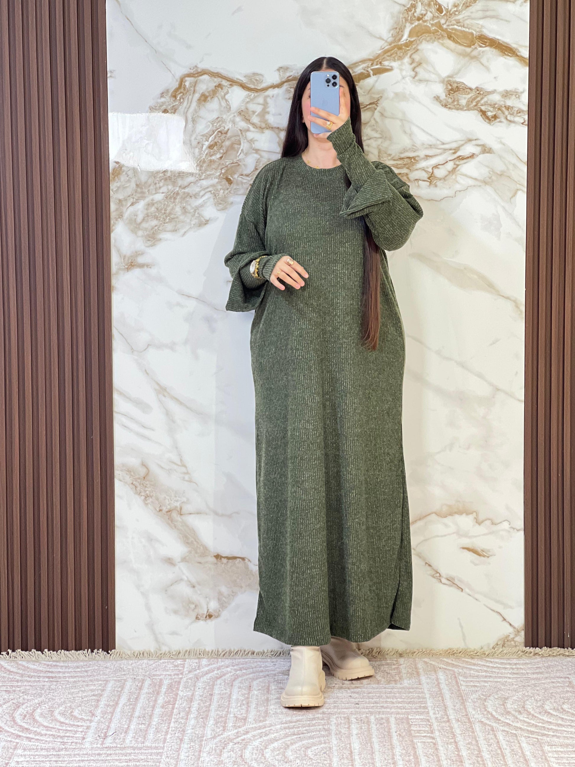 ألوان الروبة مختارة بعناية لتنسجم مع أسلوب المرأة المغربية الأنيق؛ متوفرة بالأخضر الزيتي والرمادي والبيج والكاميل، وكلها ألوان دافئة يسهل تنسيقها مع البوتات الشتوية والمعاطف والحقائب الكبيرة يمكن ارتداؤها بمفردها لإطلالة كاجوال أنيقة أو إضافة حزام رفيع حول الخصر مع إكسسوارات ذهبية للحصول على لوك شتوي متكامل يمنح شعوراً بالأنوثة والثقة في كل مناسبة
