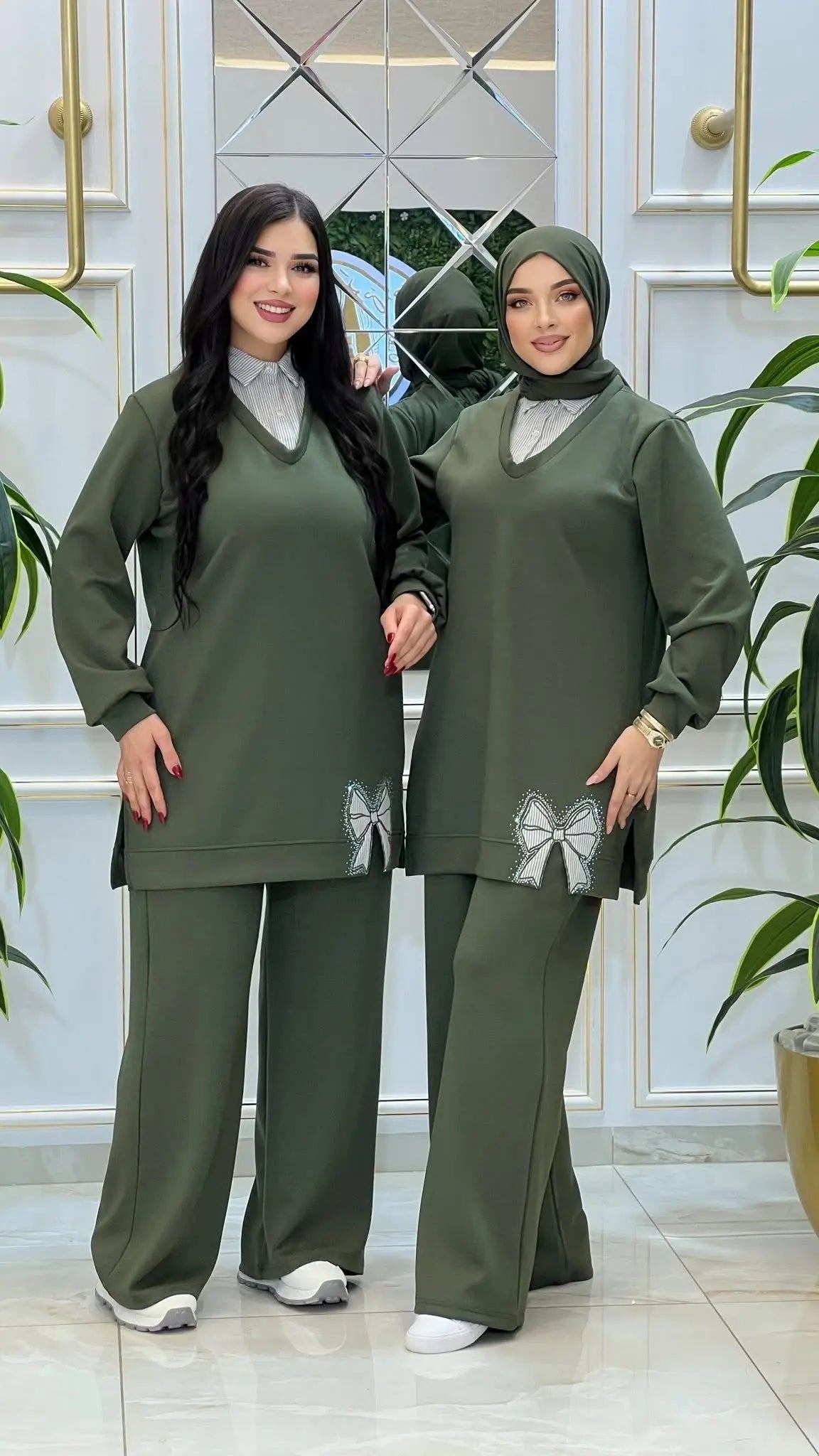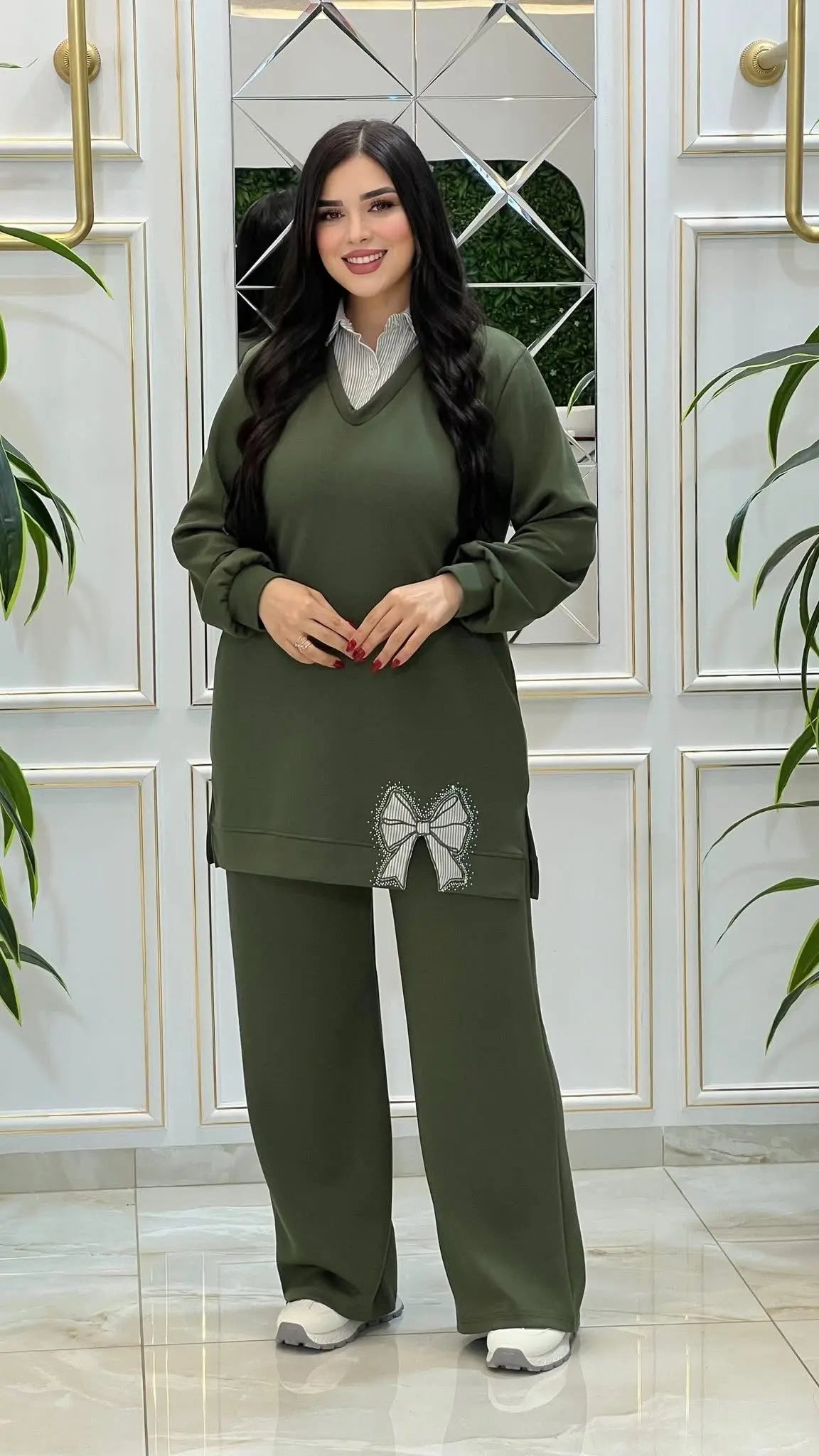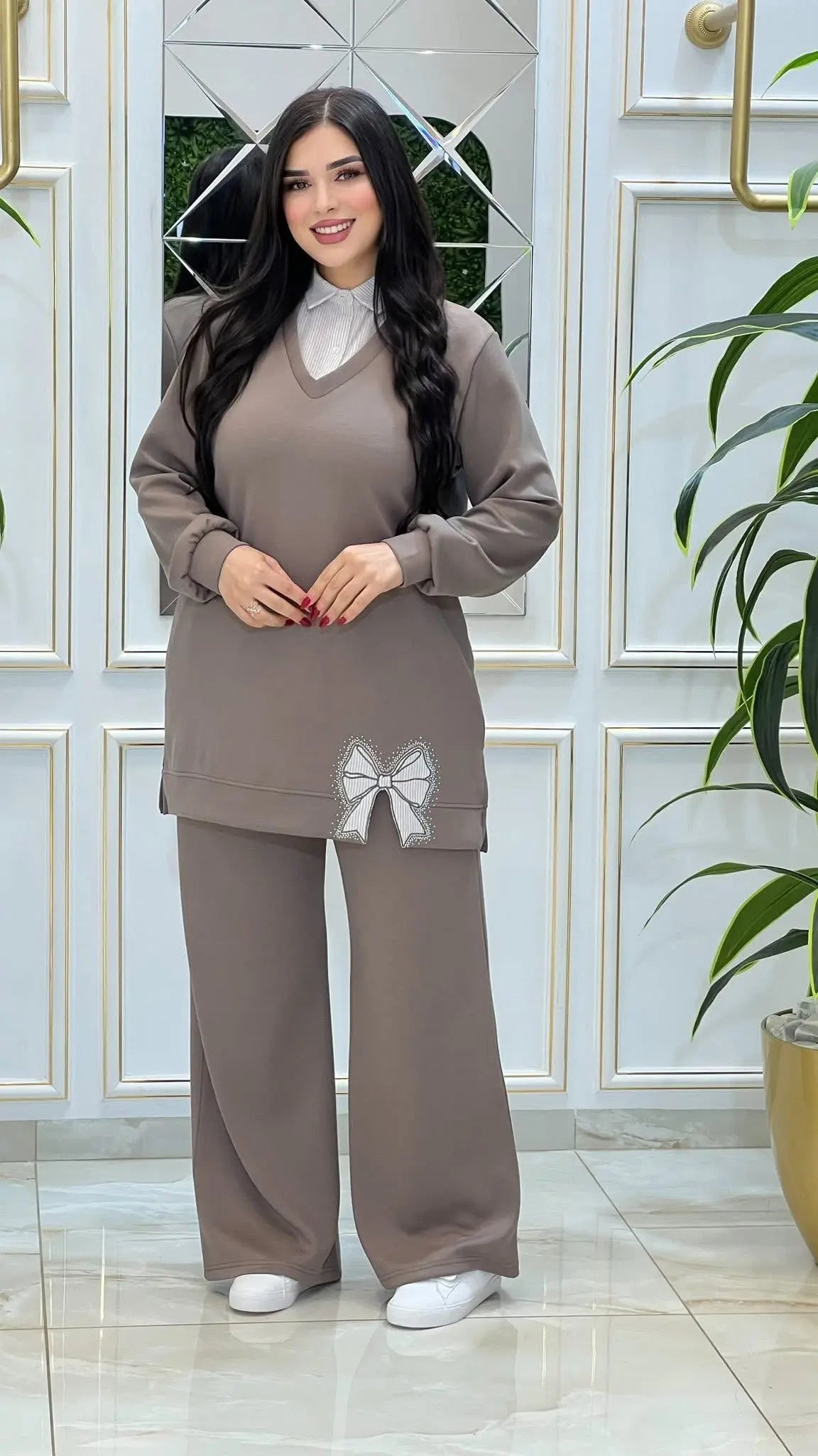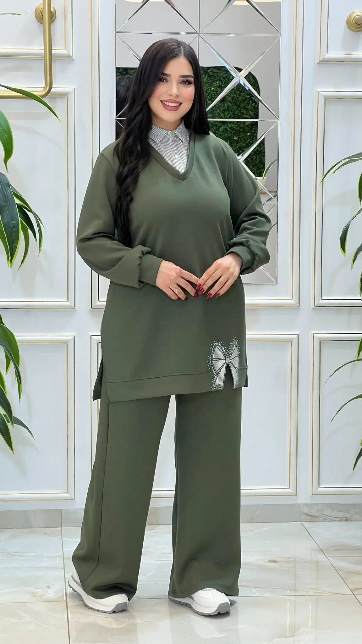 هذا الطقم الكاجوال الأنيق مصمم ليناسب ذوق المرأة المغربية العصرية التي تبحث عن الراحة مع إطلالة محتشمة وراقية في نفس الوقت. يجمع بين قصة واسعة مريحة وتفاصيل أنثوية ناعمة تجعله مناسباً للمشاوير اليومية والإطلالات الكاجوال الراقية.