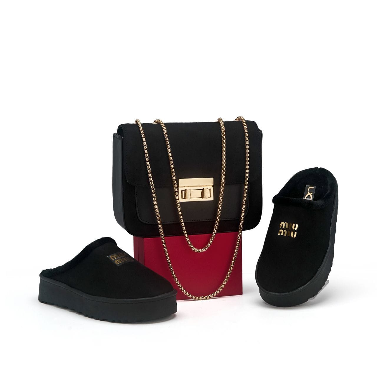 بانطوف شتوي دافئ مع حقيبة أنيقة بنفس الستايل، طقم عملي ومثالي لكل خروجاتك اليومية. صُمّم البانطوف بسول عالي ومريح لعزل البرودة ودعم القدم، مع فرو ناعم من الداخل يمنحك إحساساً بالدفء طوال اليوم.